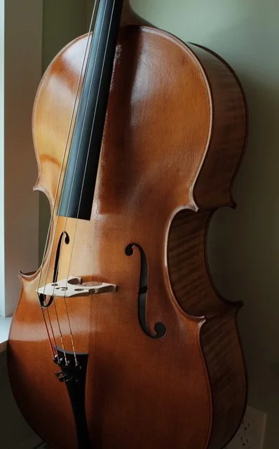 Strung with Thomastik Spirocore C and G and Larsen Soloist D and A.